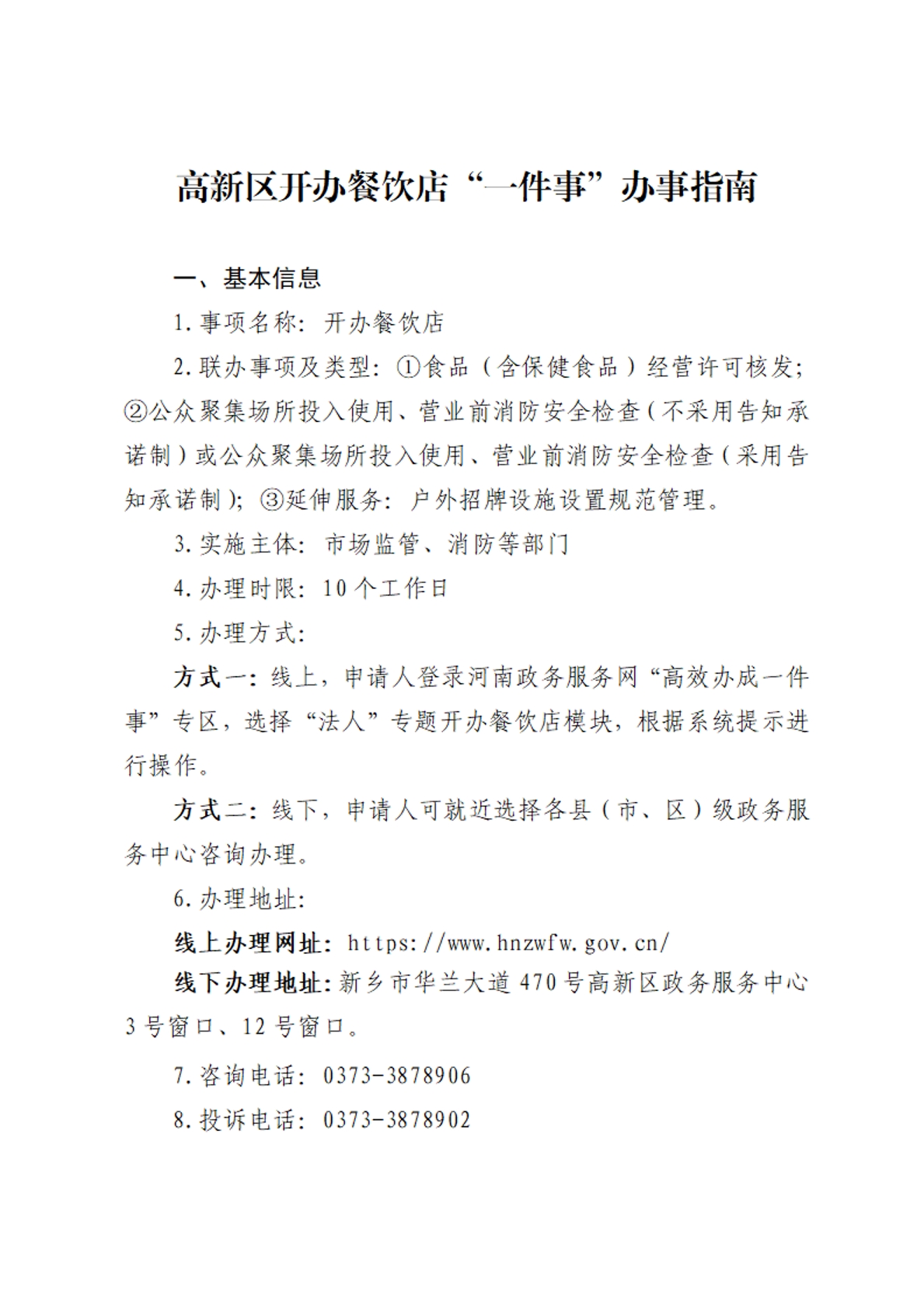 高新区开办餐饮店“一件事”办事指南