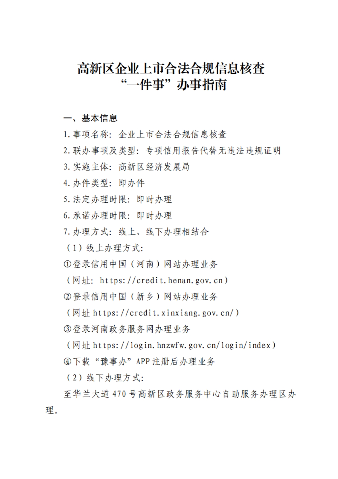 高新区企业上市合法合规信息核查“一件事”办事指南(