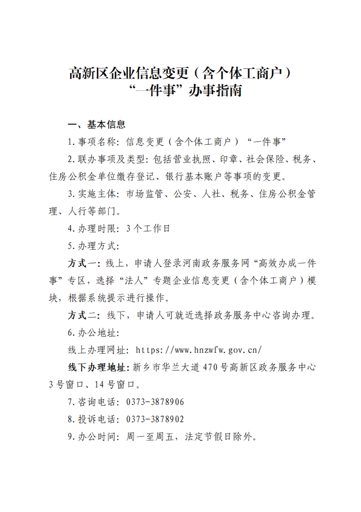 高新区企业信息变更(含个体工商户)“一件事”+办事指南