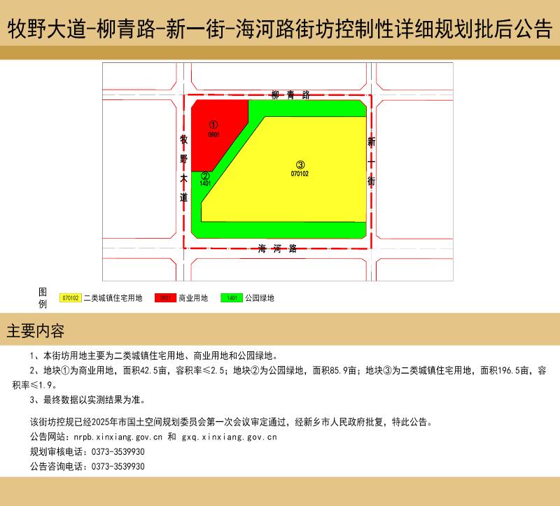 牧野大道-柳青路-新一街-海河路街坊控制性详细规划批后公告