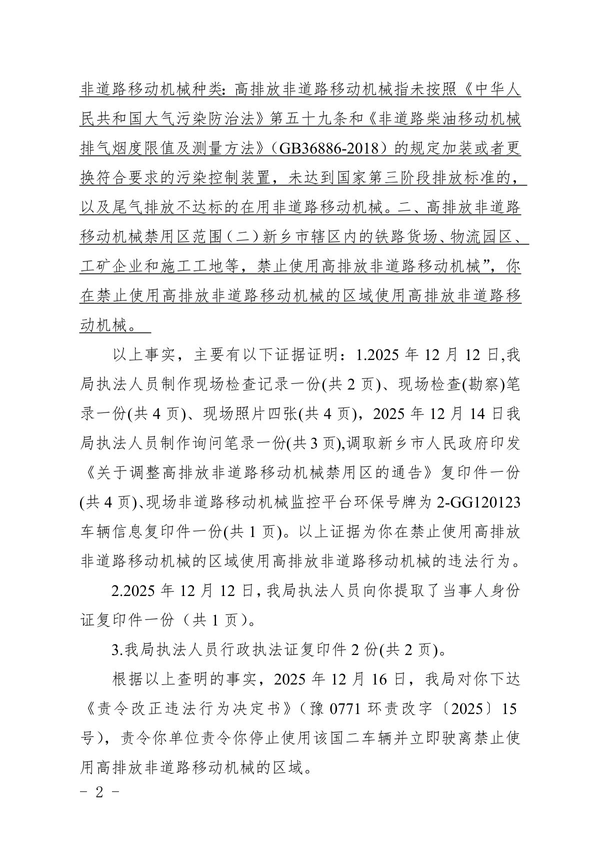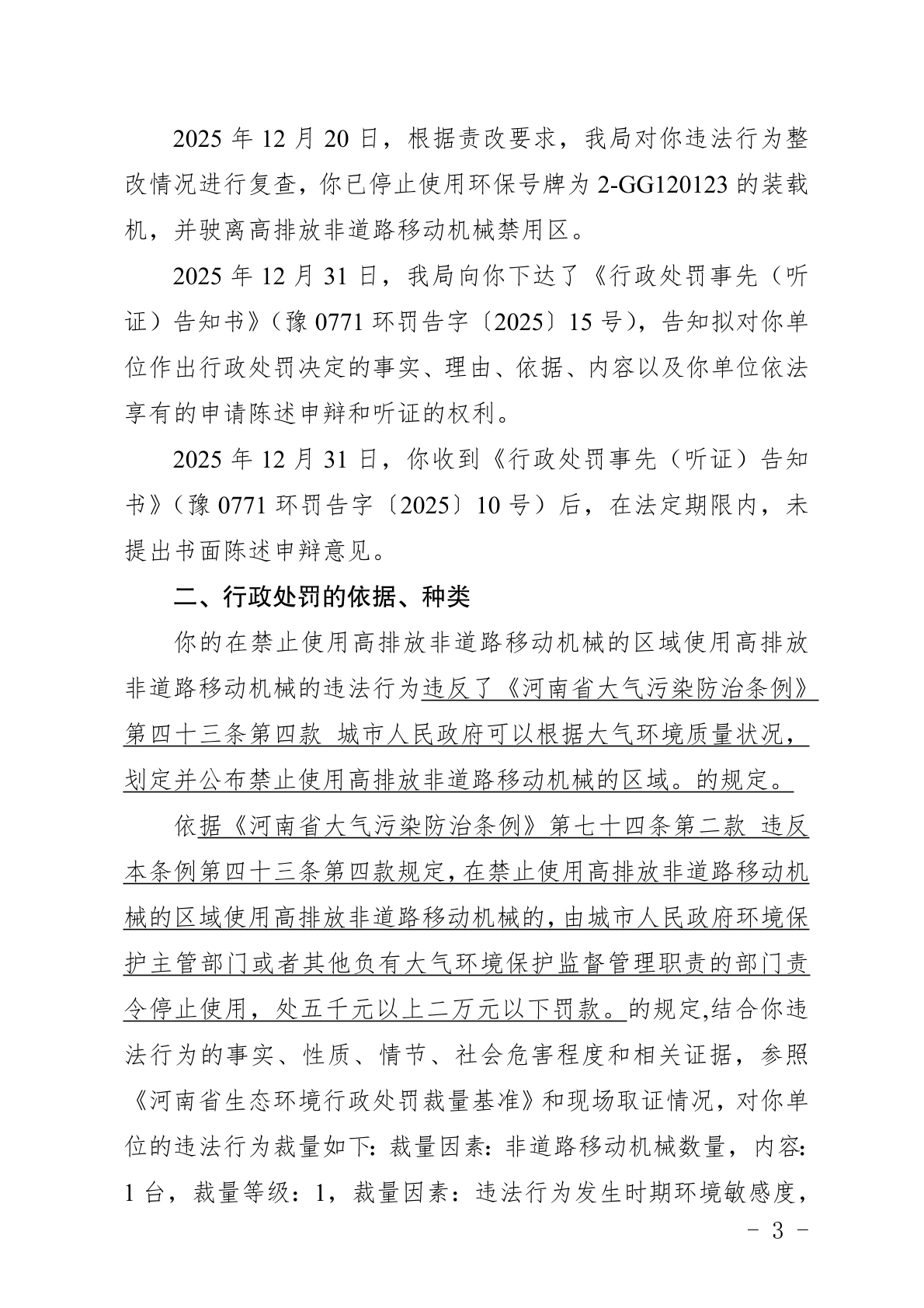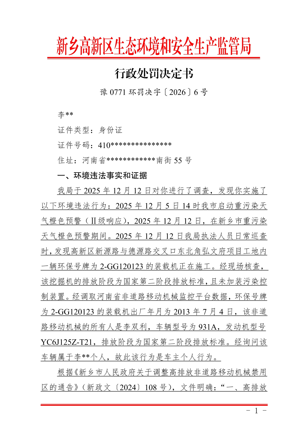 行政处罚决定书 豫 0771 环罚决字〔2026〕6 号