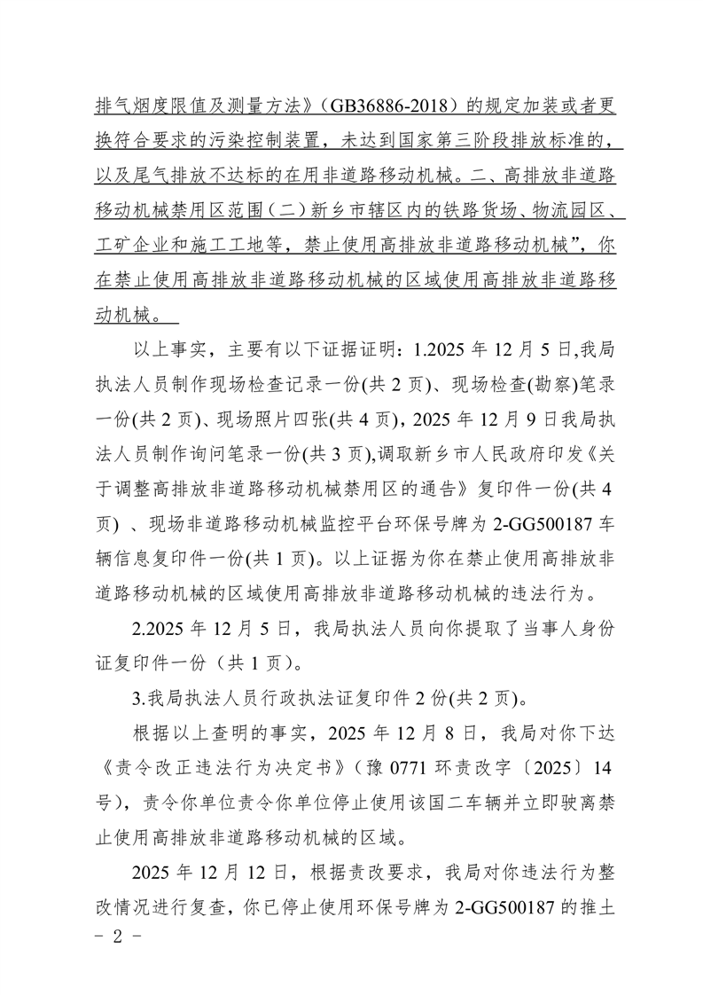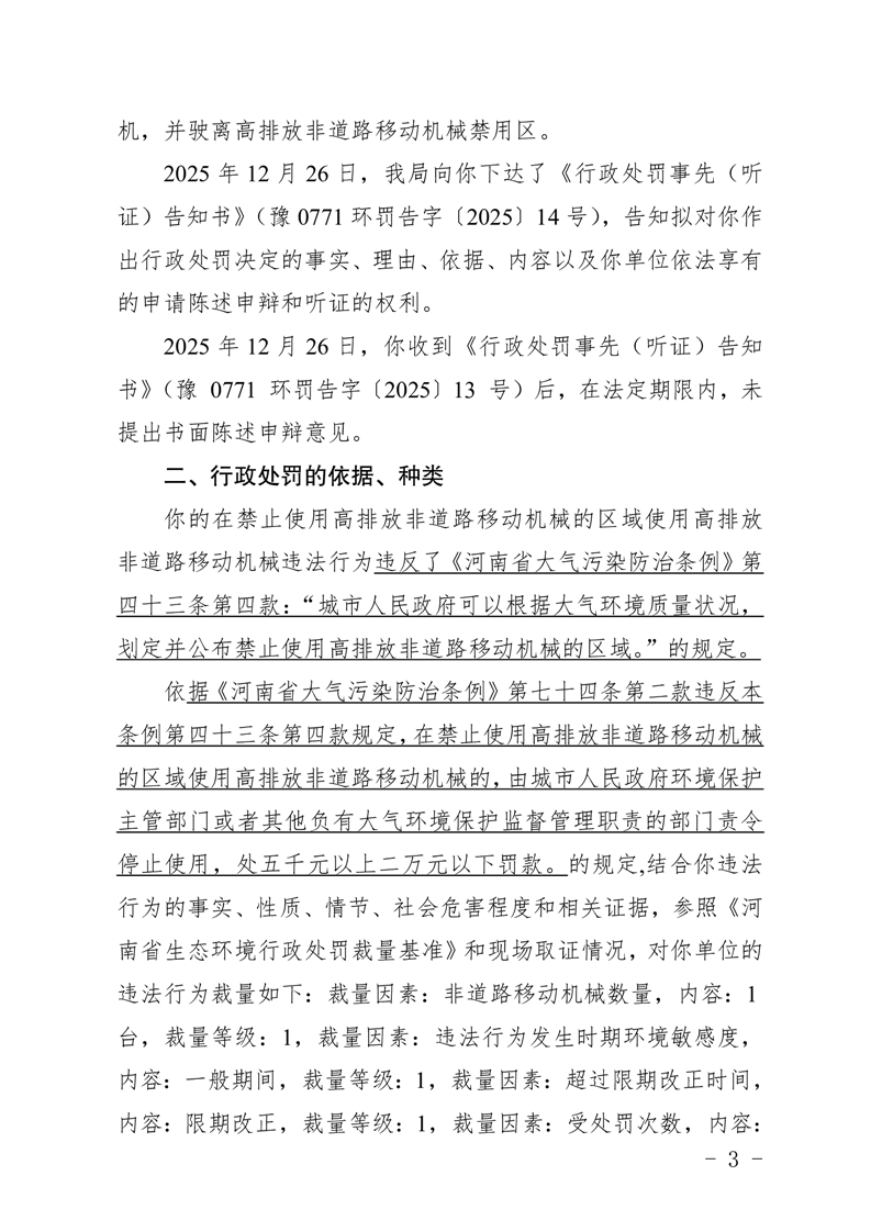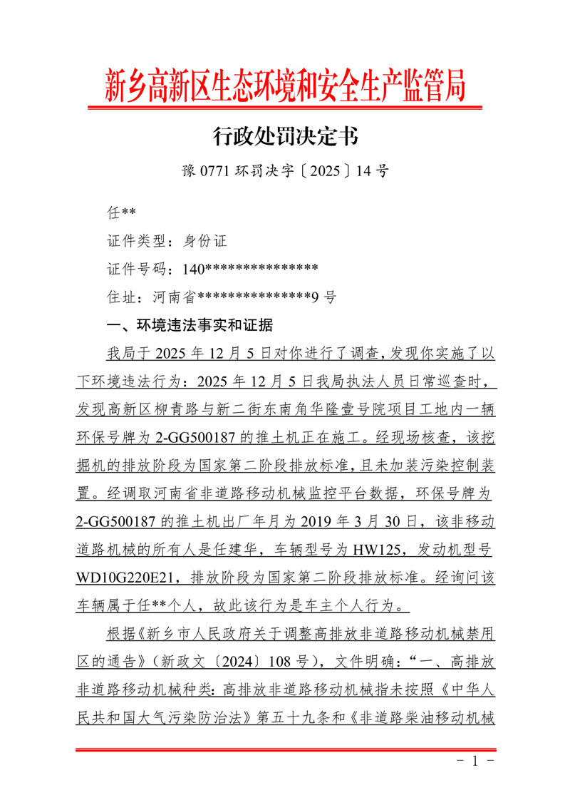 豫 0771 环罚决字〔2025〕14 号
