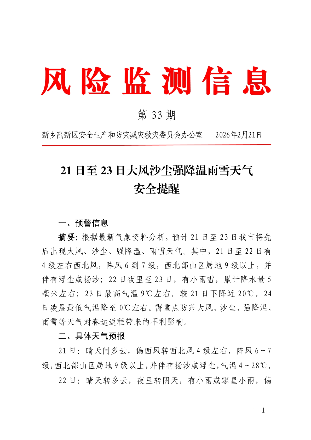 风险监测信息(2026年第33期)